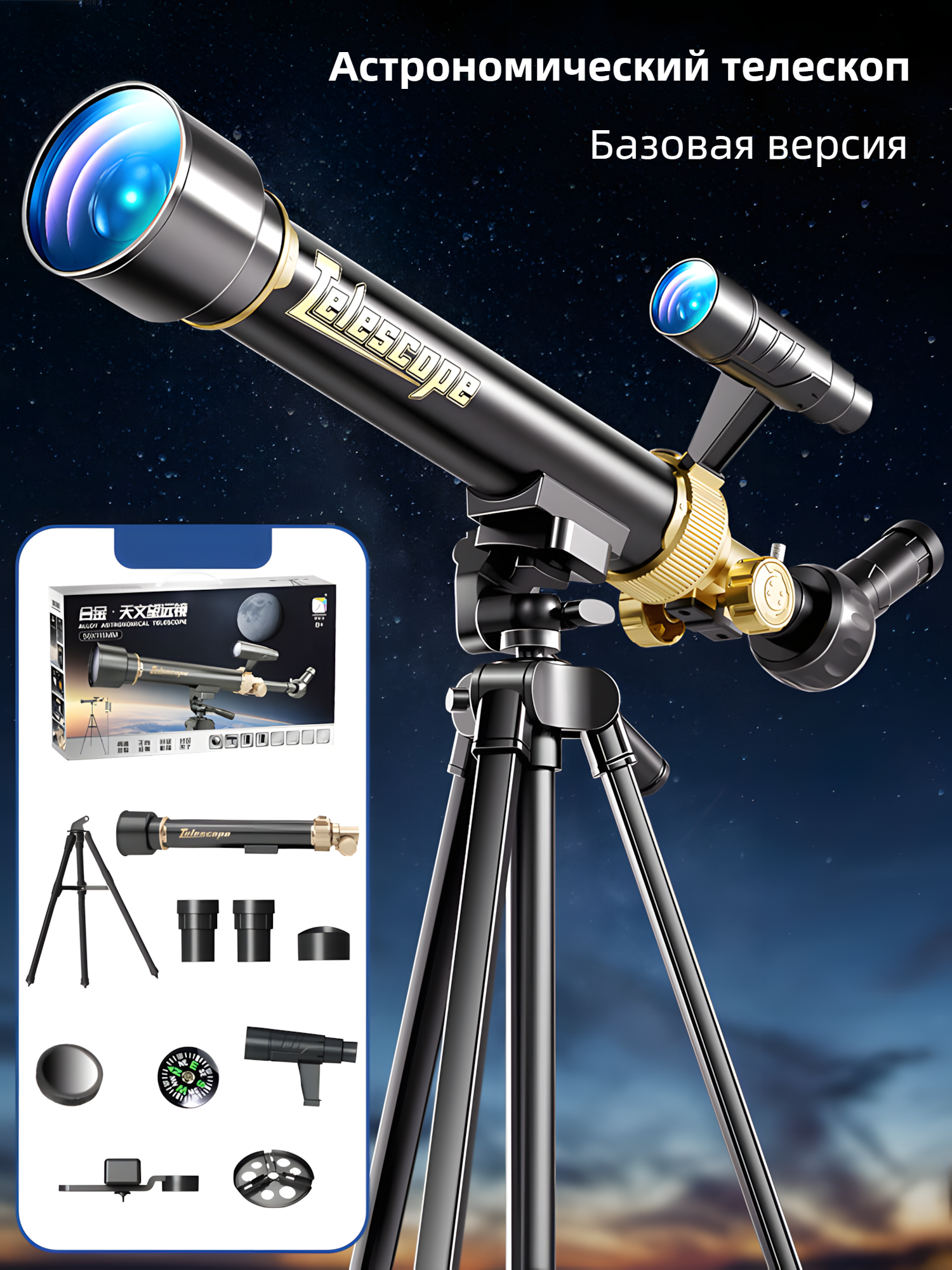 Отзывы на Астрономический телескоп XUEYOUMA для детей, 60x, 500 мм, базовая версия, черный/золотой