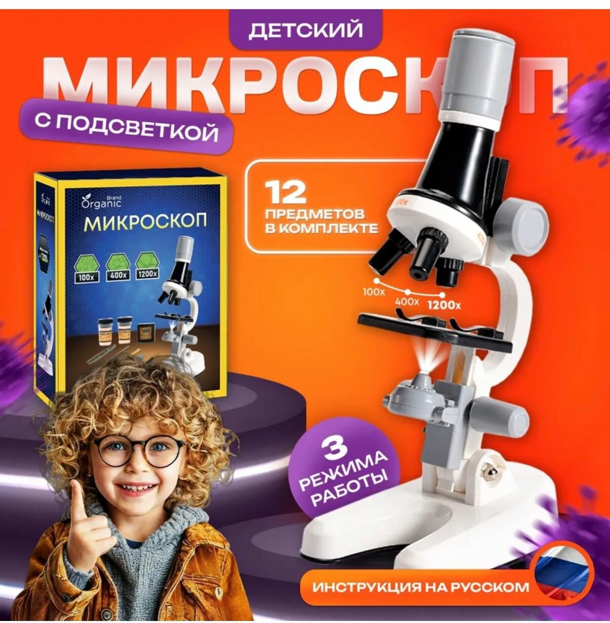 Микроскоп "Юный исследователь", кратность увеличения 1200х, 400х, 100х, с подсветкой