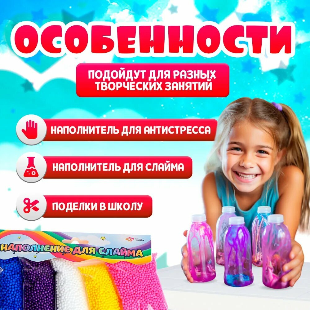 Наполнение для слаймов Школа таланта, пенопластовые шарики 5 цветов по 2 г информация: