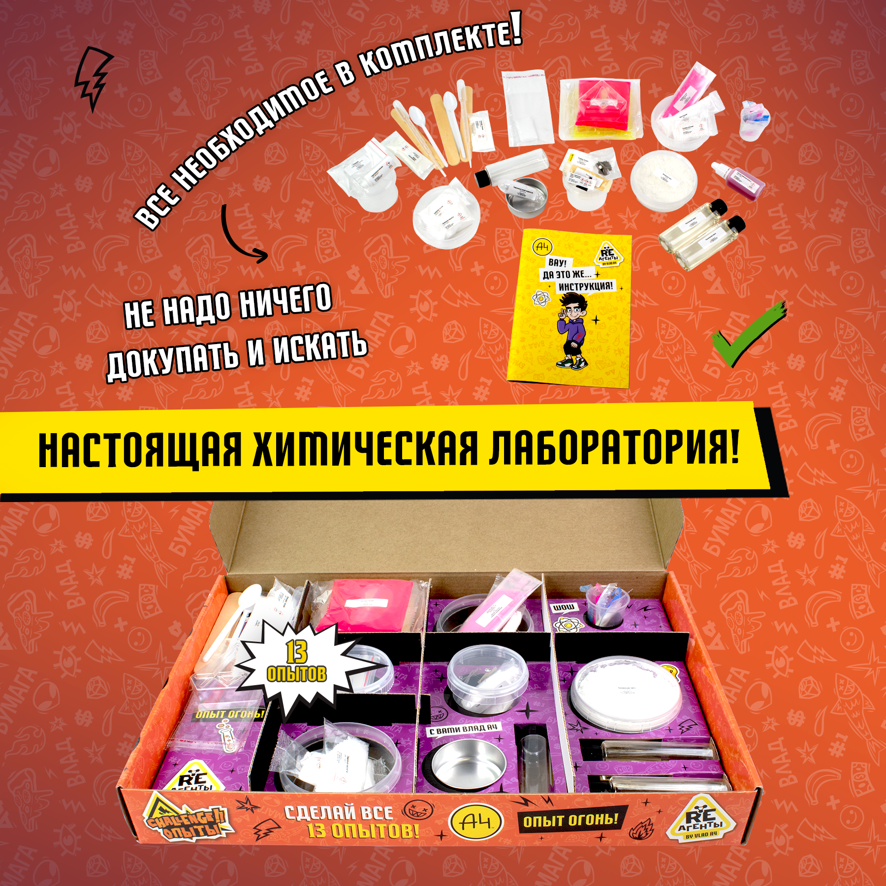 10 цен на Набор опытов 13в1 от Влад А4 / Опыты и эксперименты для детей