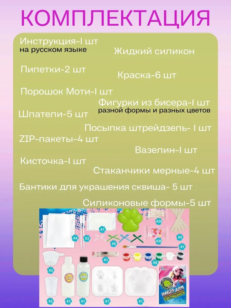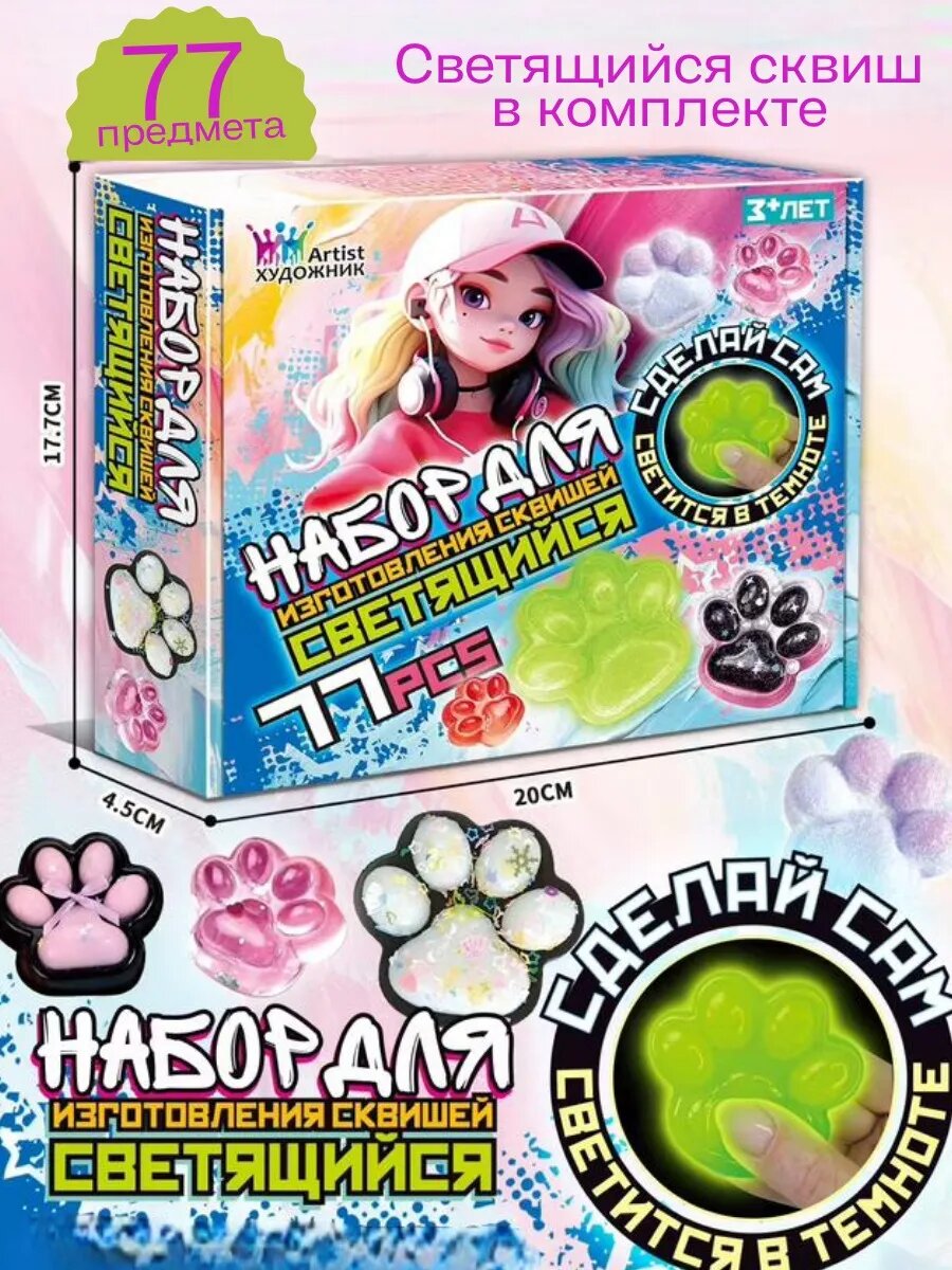 10 цен на Набор для творчества таба сквиш лапка из силикона светящийся