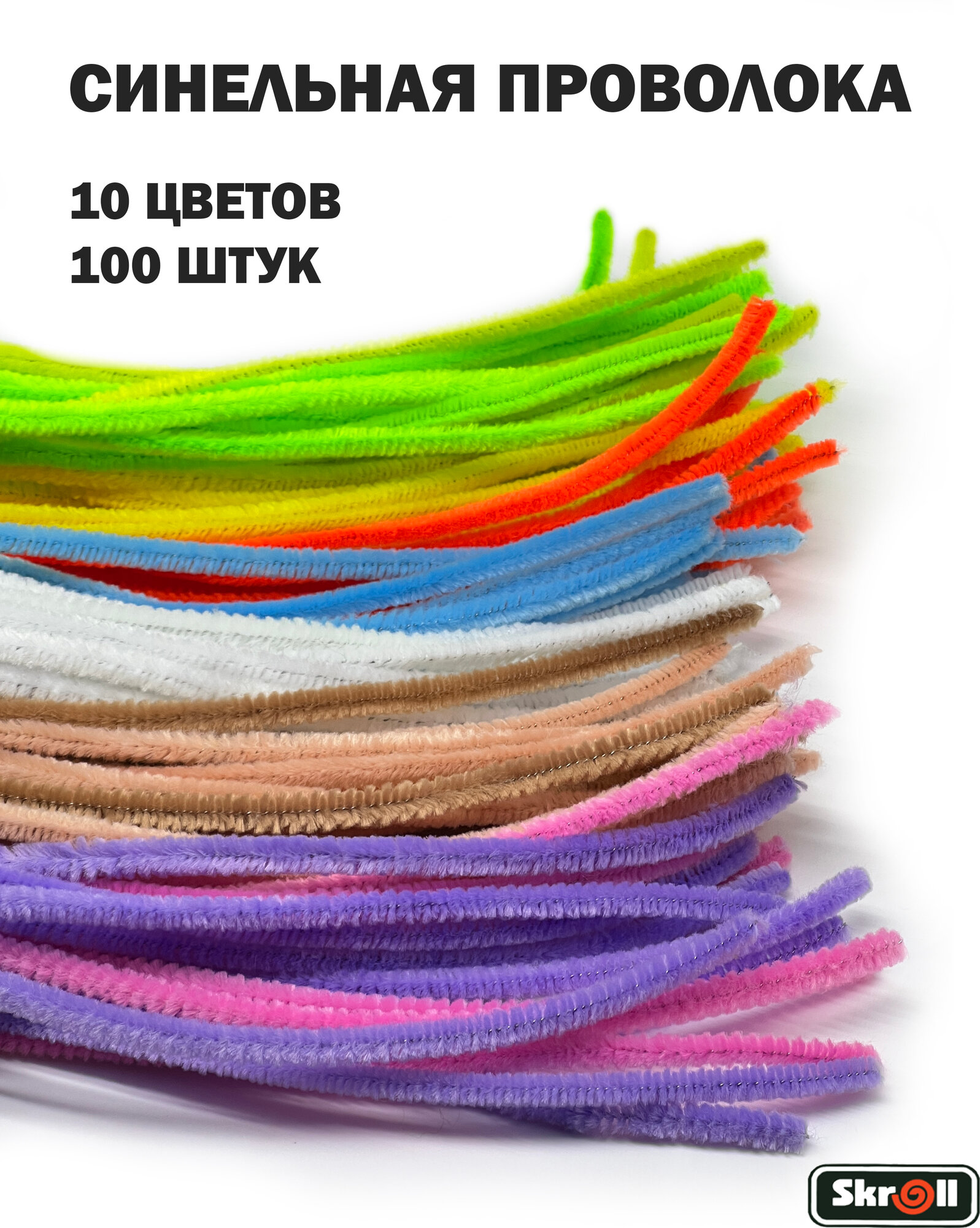 10 цен на Синельная проволока для рукоделия, Набор 100 штук 10 цветов, размер 30 см*0.6cм/ Skroll