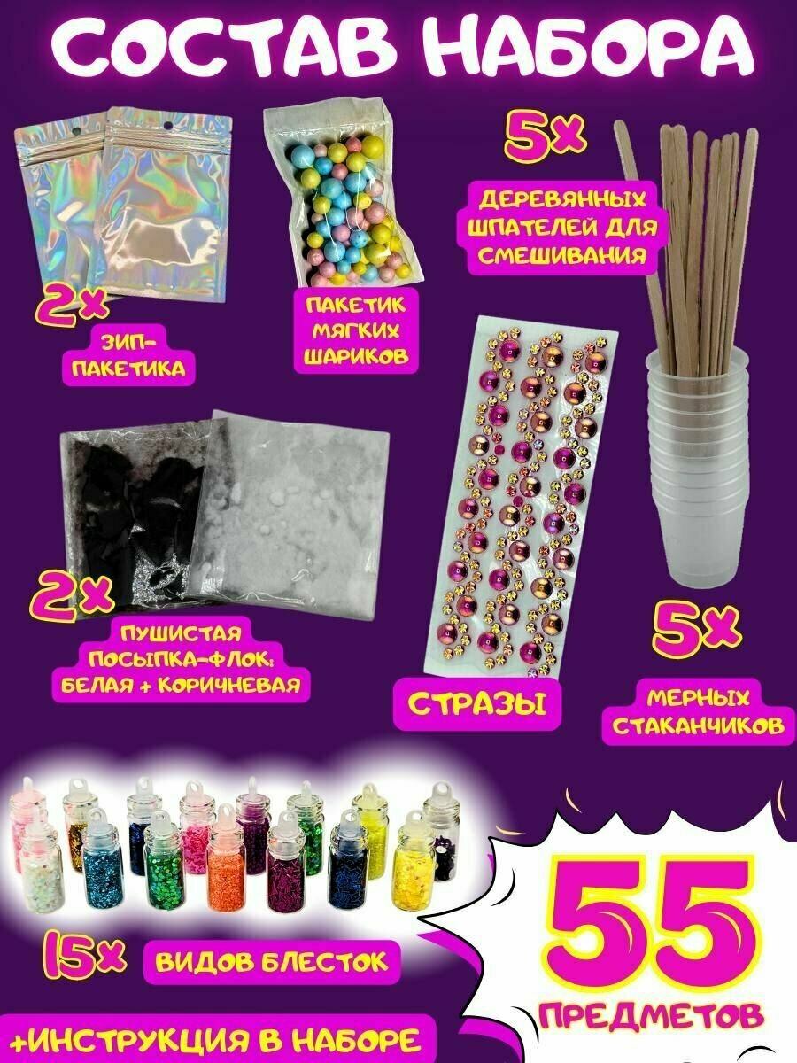 Игрушка антистресс для рук Таба Сквиш Кошачья лапка котика для детей/ Набор для создания Сквишей 55 предметов информация: