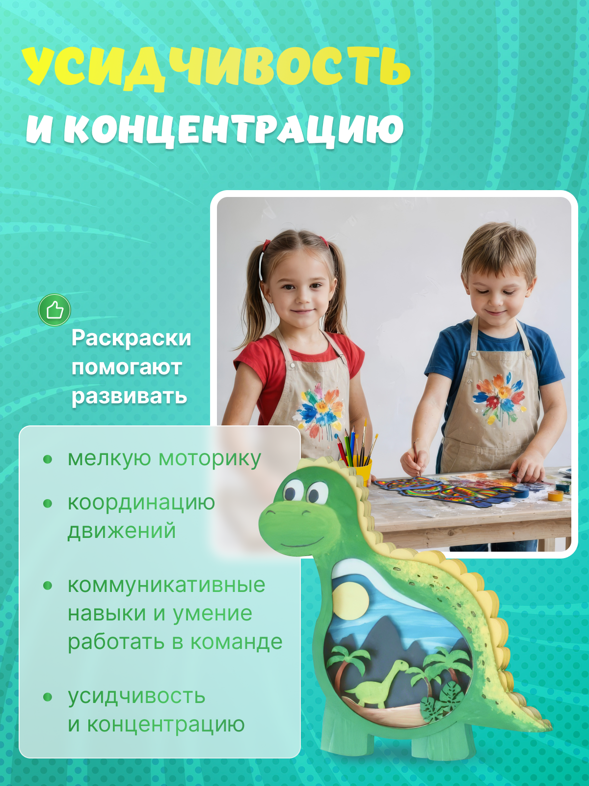 Отзывы на Набор для творчества "Динозаврик", 3D-раскраска, для развития фантазии