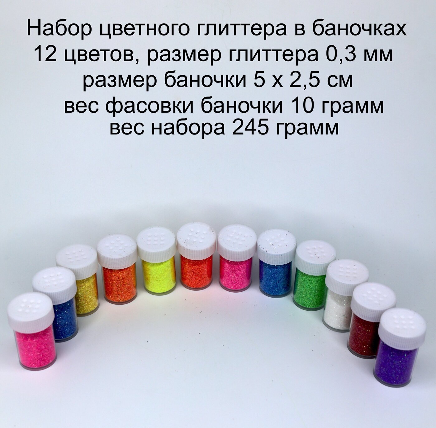 Блестки для декора Блестки декоративные глиттер в баночках 12 цветов по 10 грамм/ Skroll информация: