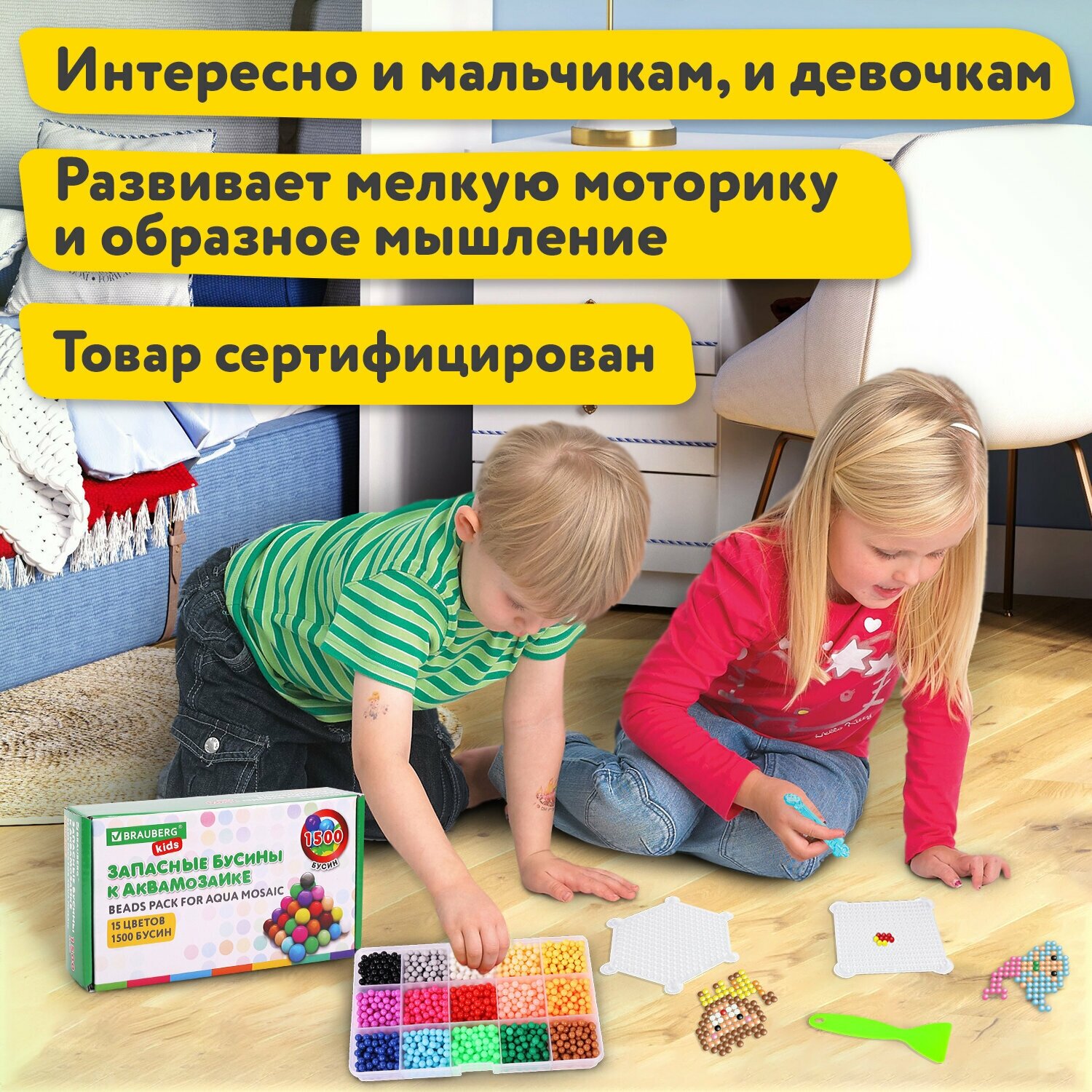Запасные бусины для Аквамозаики Aqua Pixels с карточками-трафаретами 15 цветов 1500 штук, Brauberg, 664914 информация: