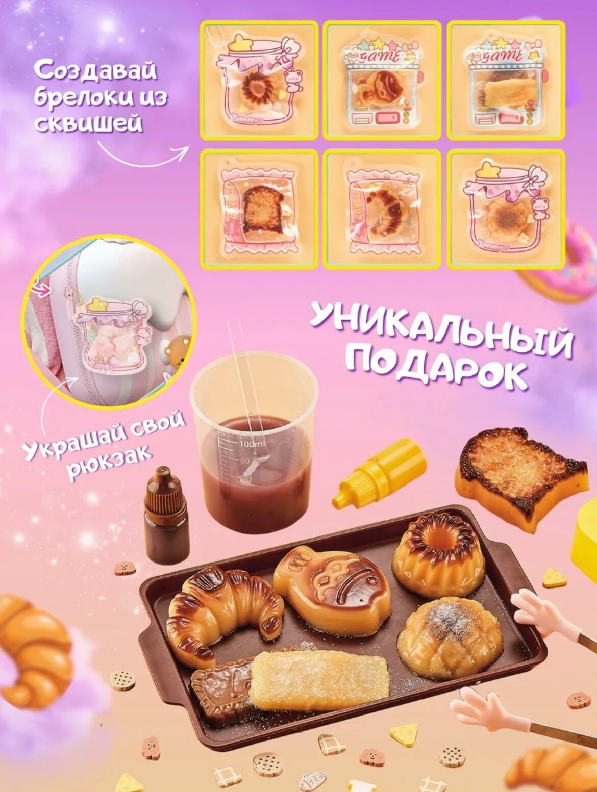 Набор для изготовления игрушек сквишей, набор для творчества 6в1, 6 форм + декор 1 758 ₽