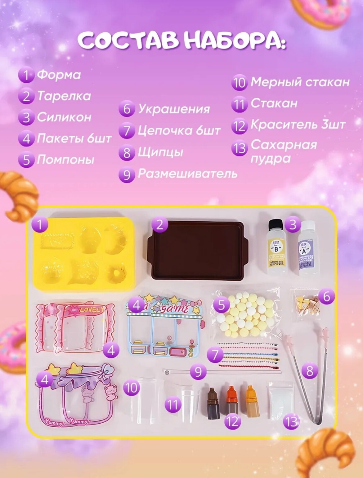Набор для создания сквиш-сладости 35 предметов, набор для творчества лапка и фигурки из силикона информация: