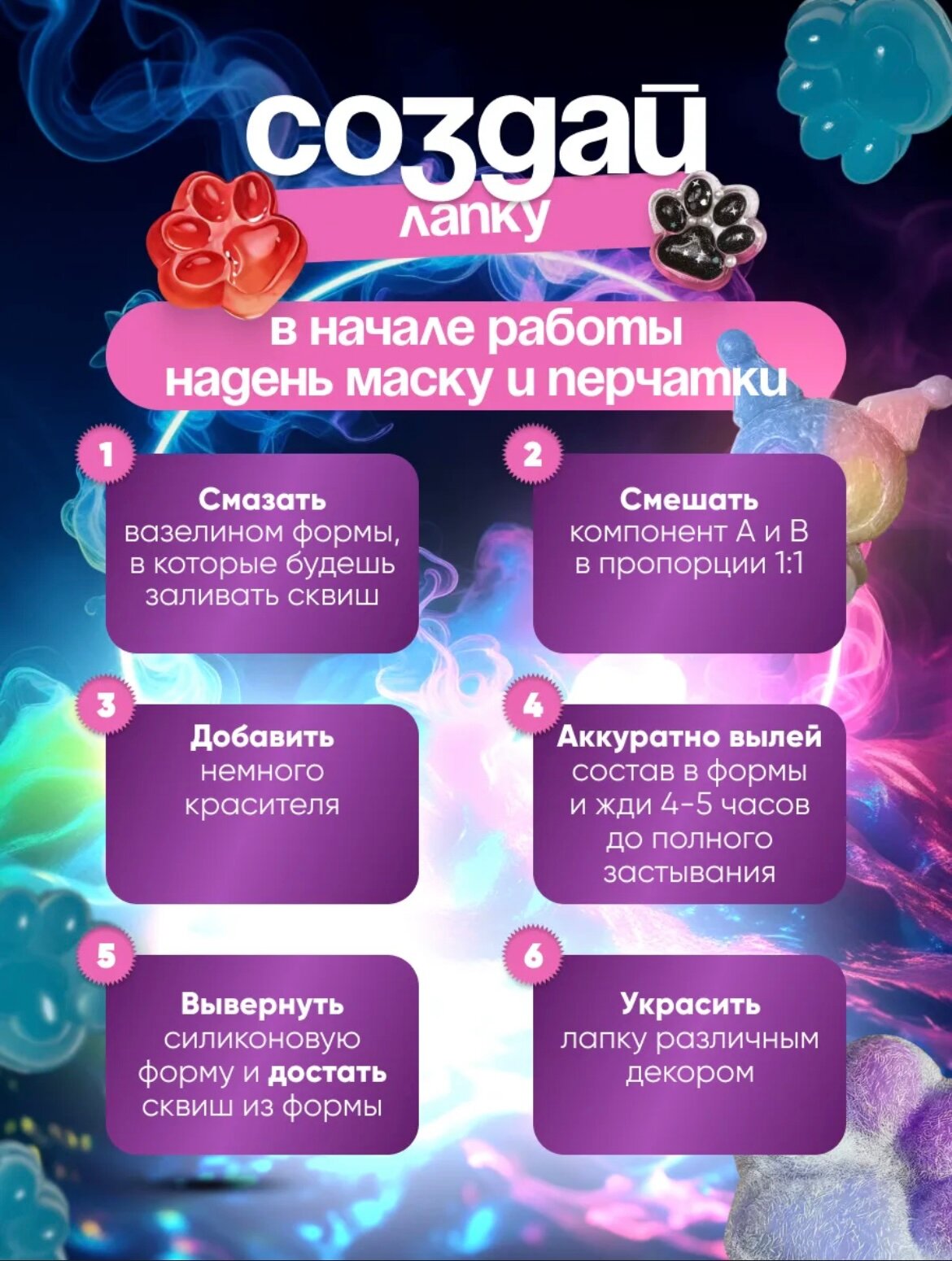 Большой набор для изготовления светящихся сквишей, набор для творчества лапка из силикона, 78 предметов 1 293 ₽