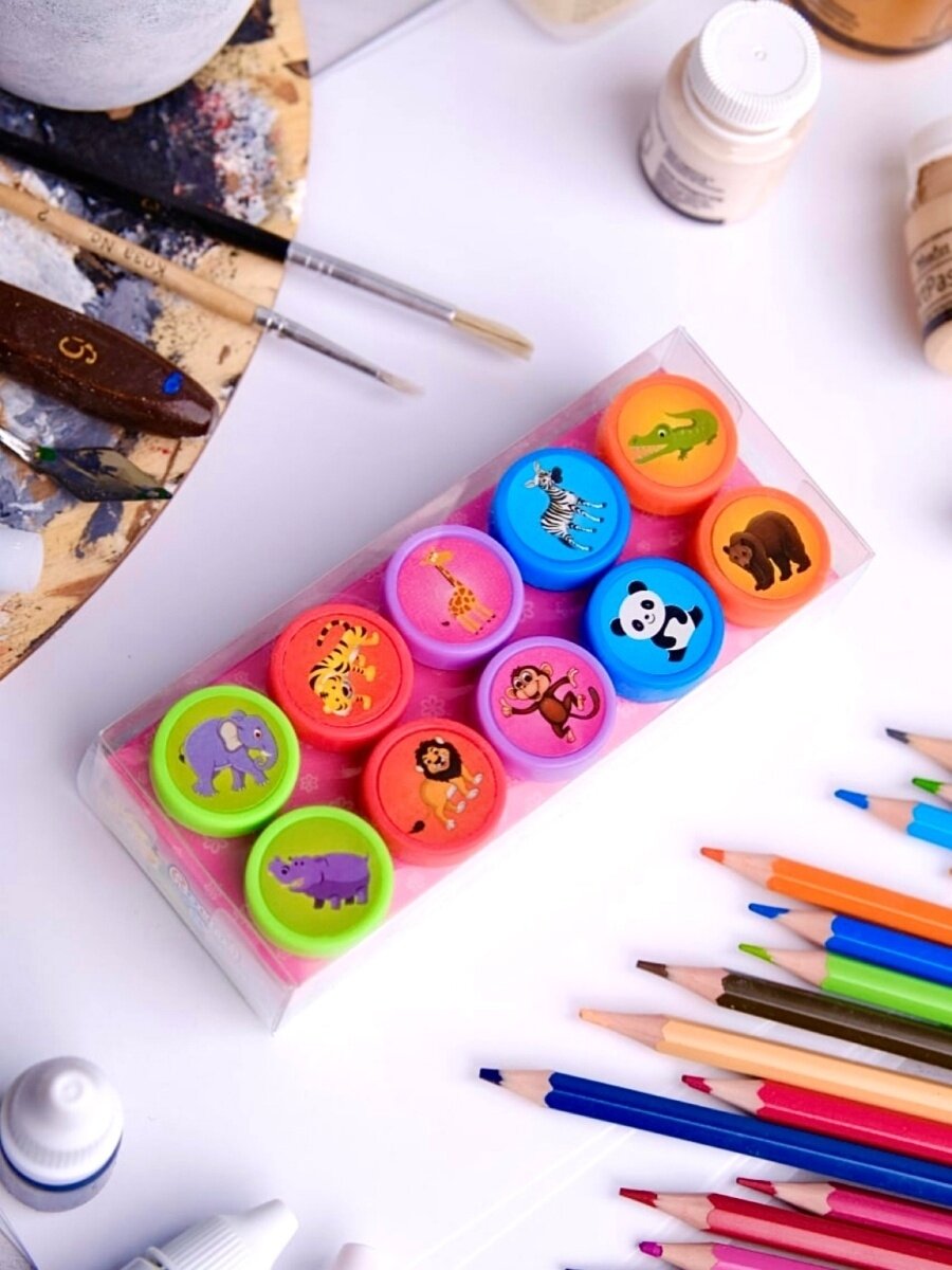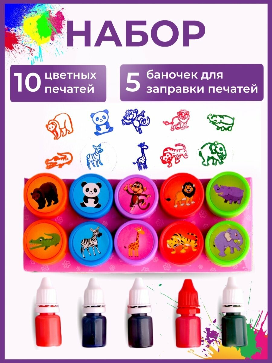 10 цен на Печать для творчества Зоопарк BanyMarny набор 10 цветных печатей и 5 баночек с краской