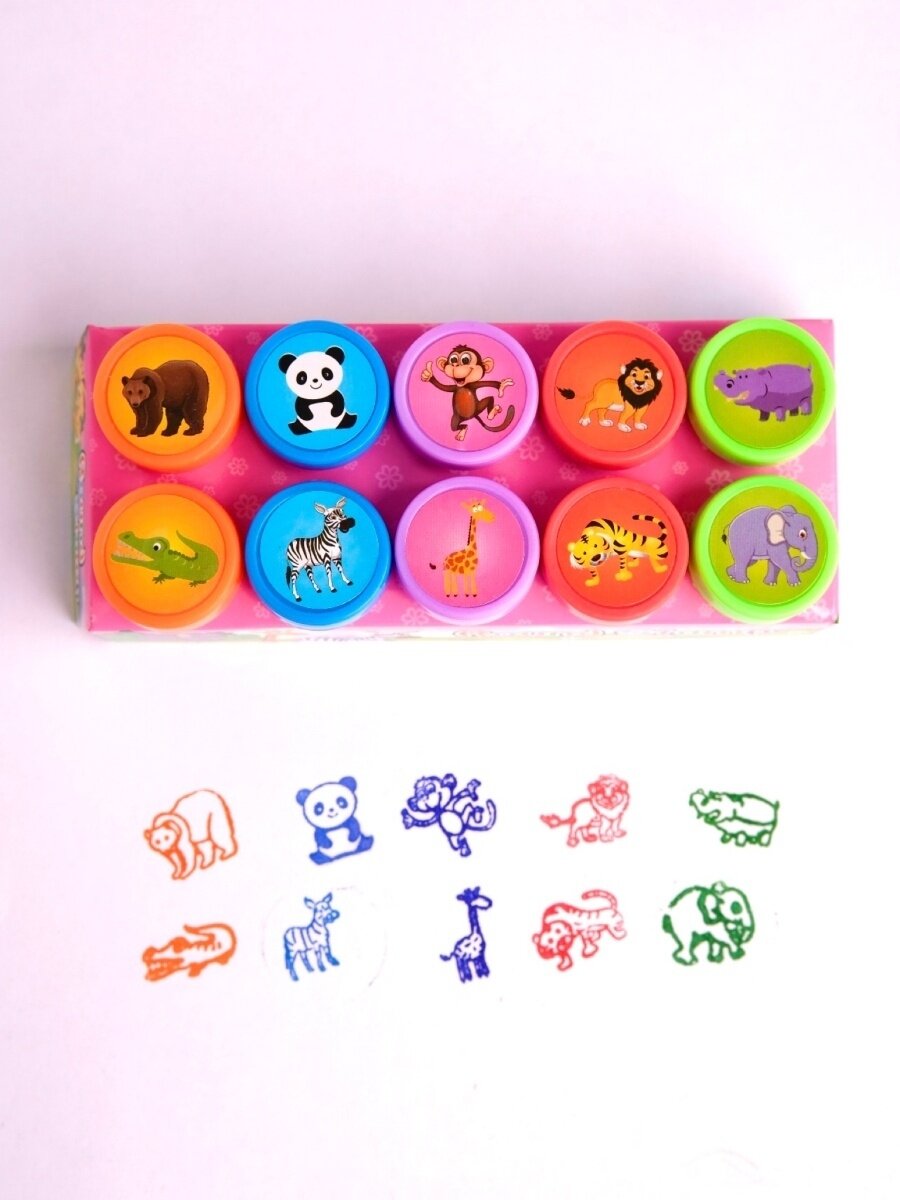 Печать для творчества Зоопарк BanyMarny набор 10 цветных печатей и 5 баночек с краской информация:
