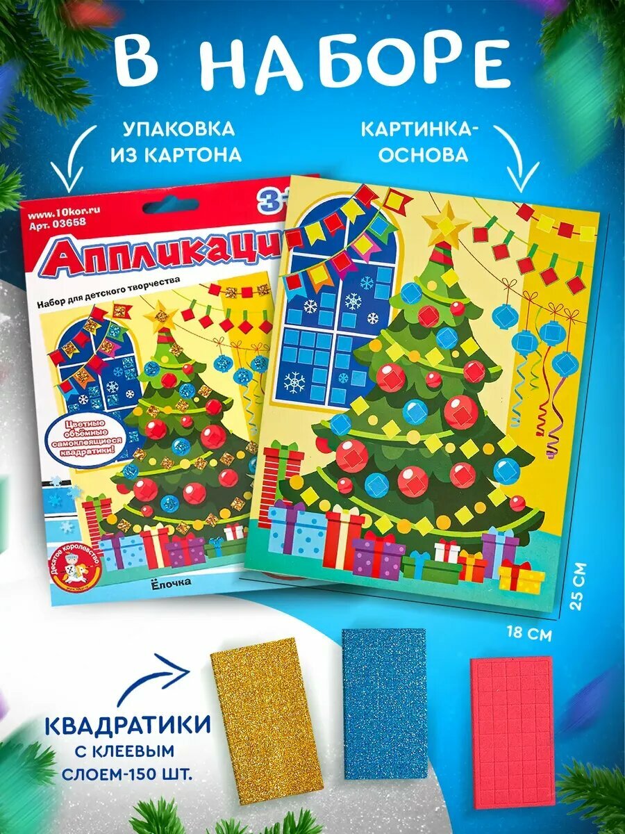 Набор для аппликации Десятое Королевство "Ёлка", детский, красный, золотой и синий цвета информация: