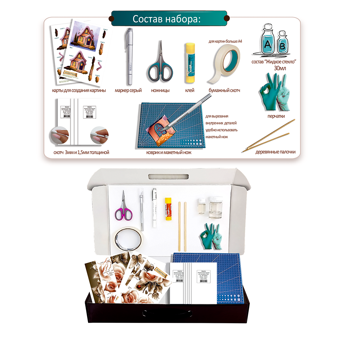 10 цен на Набор папертоль "Карамельные розы" с жидким стеклом Магия Хобби, для создания объемной 3D картины