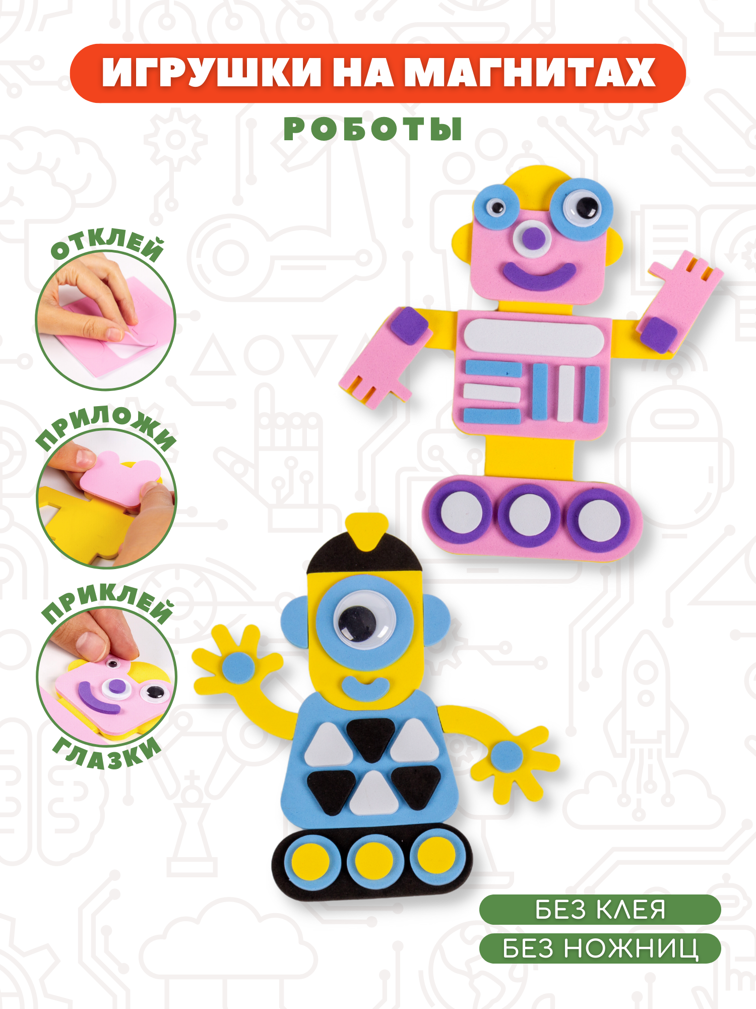 Игрушки на магнитах Дрофа-Медиа "Роботы", для развития моторики, от 3 лет, самоклеящиеся информация: