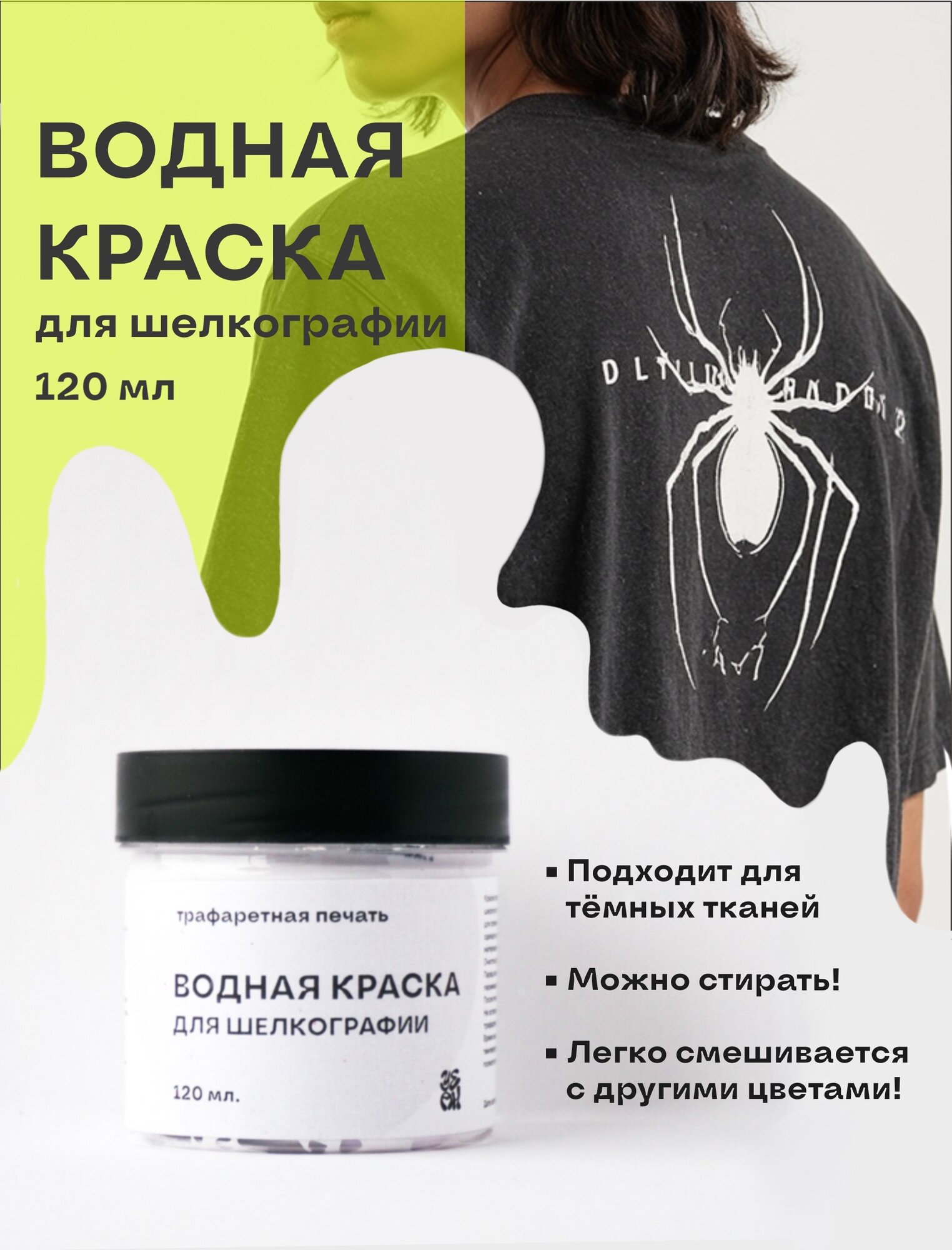 Отзывы на Водная белая краска для шелкографии 120 мл. / Yean / Набор для шелкографии