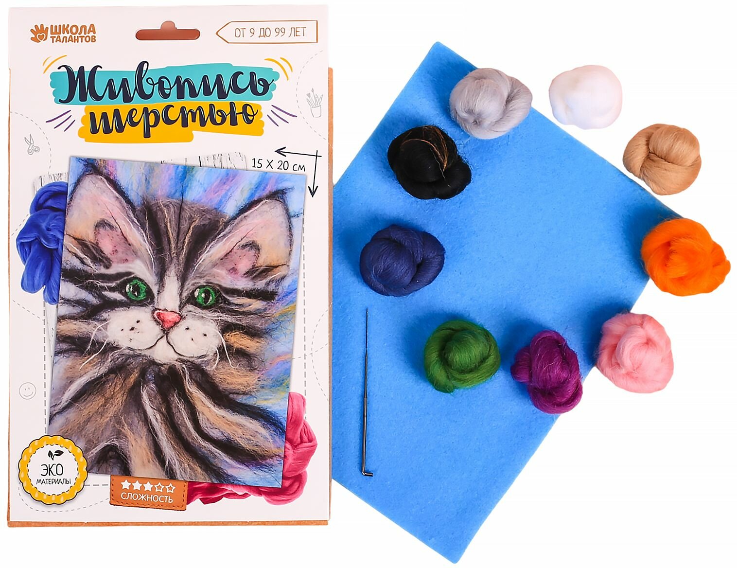 10 цен на Живопись шерстью "Котёнок" с эко материалами, набор для валяния и детского творчества, формат А5, уровень сложности 3