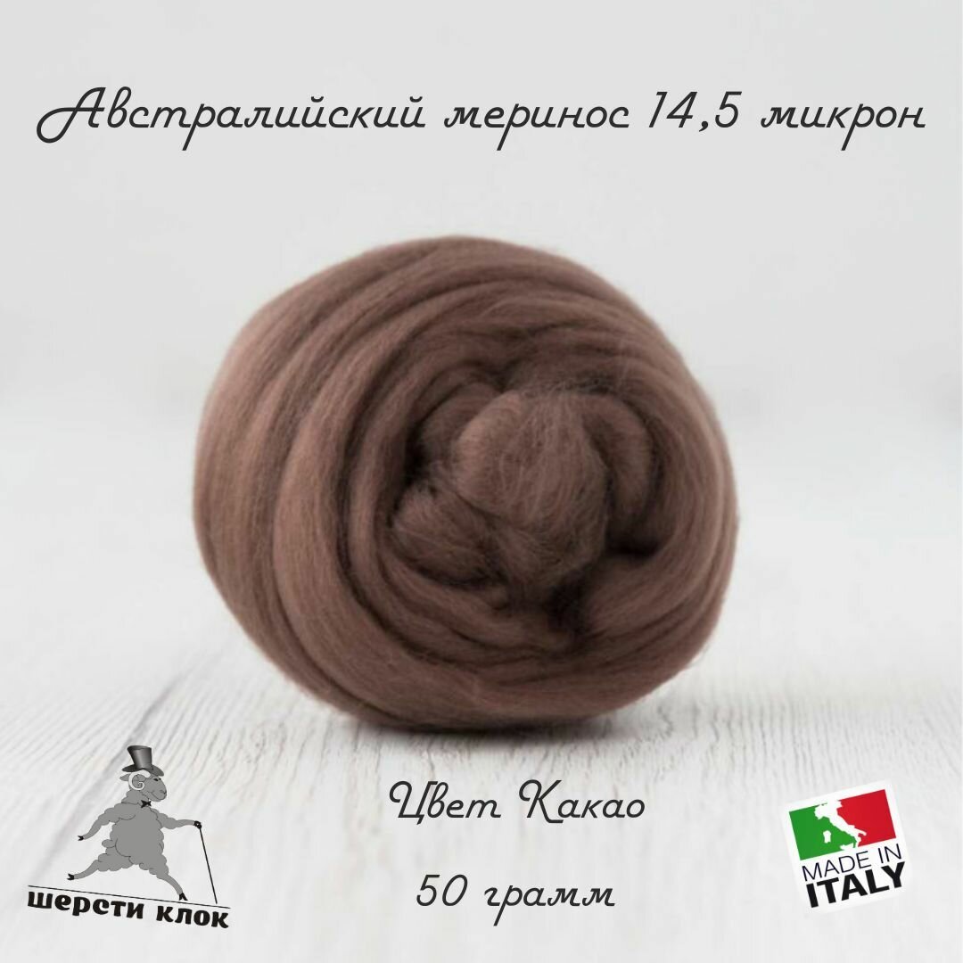 Шерсть для валяния ультратонкая австралийский меринос 14 мкр, Италия, цвет Какао информация:
