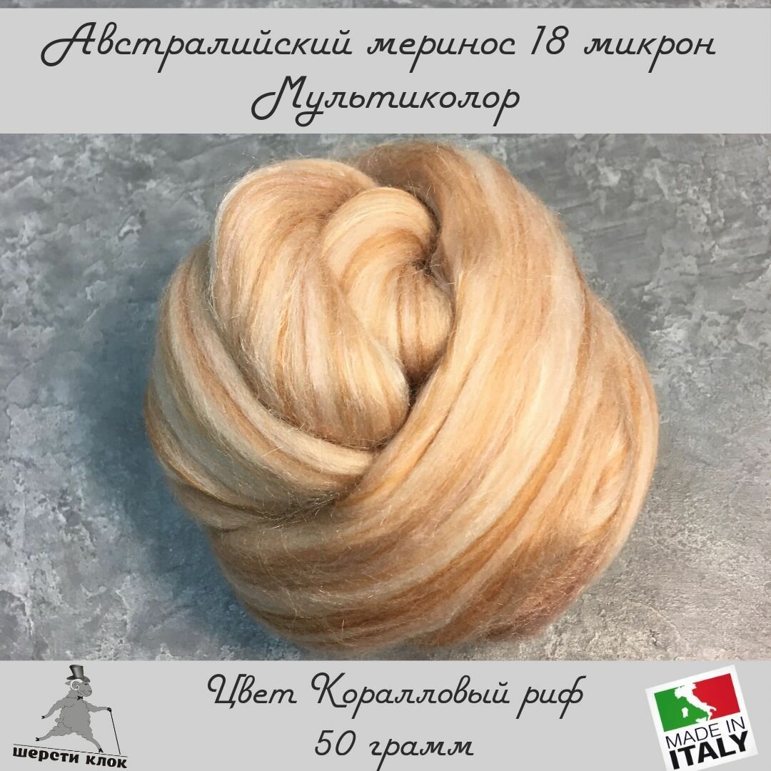 10 цен на Шерсть для валяния мультиколор австралийский меринос 18 мкр, Италия, цвет Коралловый риф
