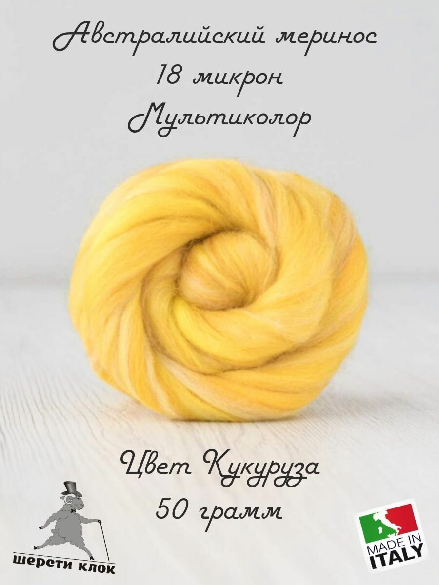 10 цен на Шерсть для валяния мультиколор австралийский меринос 18 мкр, Италия, цвет Кукуруза