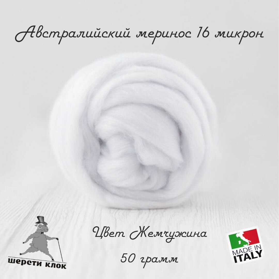 10 цен на Шерсть для валяния супертонкая австралийский меринос 16 мкр, Италия, цвет Жемчужина