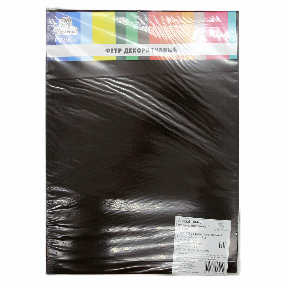 Набор декоративного фетра 22*30 см, толщина 2 мм, 3 листа в упаковке (06 темно-коричневый) информация: