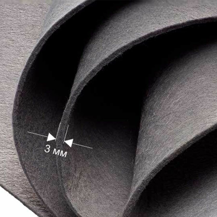 Отзывы на Фетр однотонный твердый 3 мм в рулоне 100 х 100 см, темно-серый С65, плотность 450 г/м2