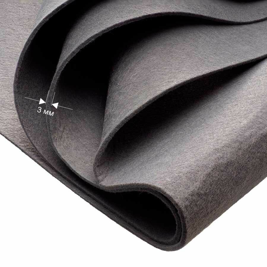 10 цен на Фетр однотонный твердый 3 мм в рулоне 100 х 100 см, темно-серый С65, плотность 450 г/м2