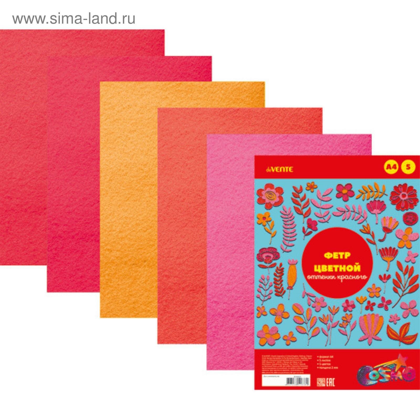 10 цен на Фетр цветной мягкий A4 deVENTE. "Оттенки красного" 5 цветов, 5 листов, толщина 2 мм