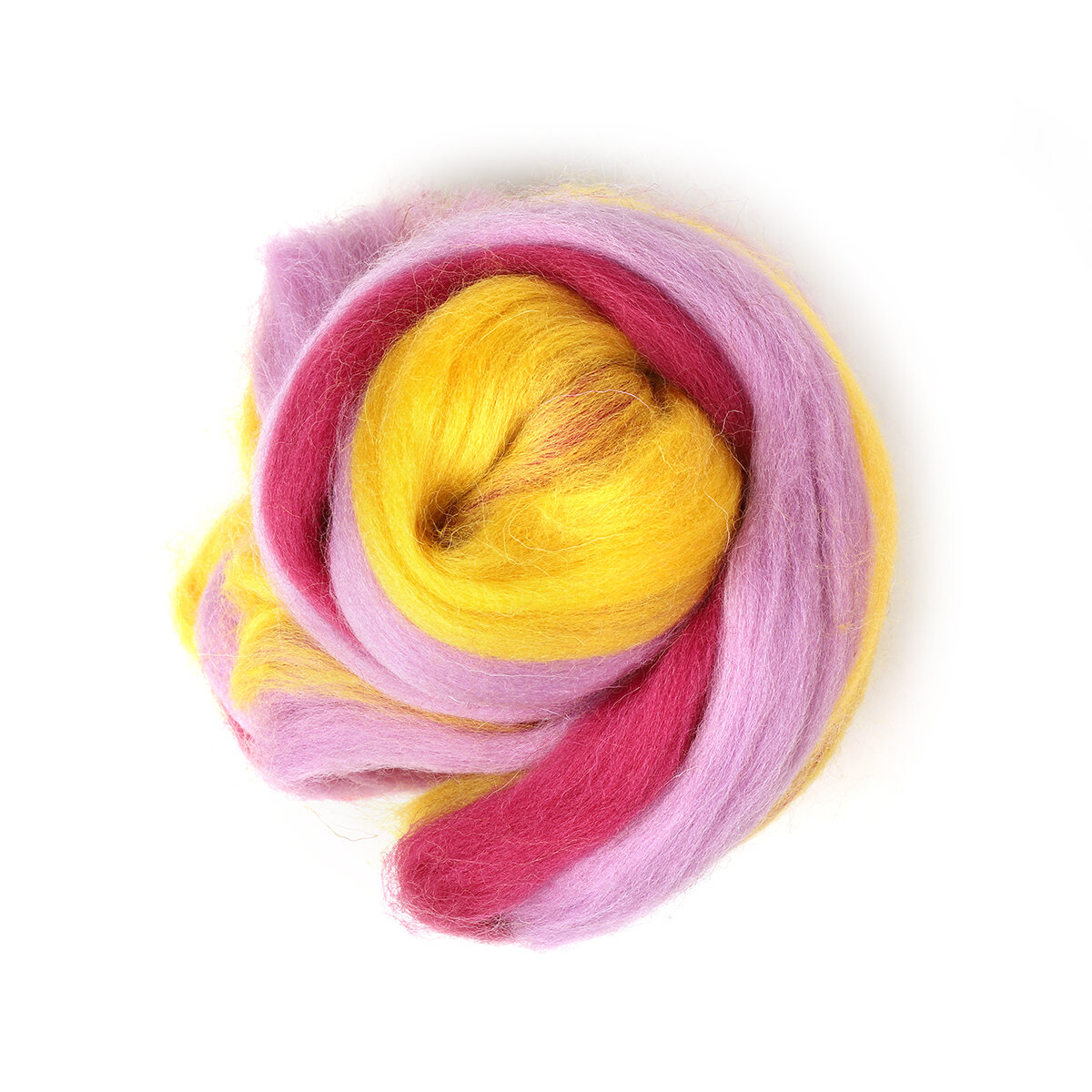 Шерсть для валяния пехорка полутонкая шерсть (100%шерсть) 50г цв.1509 мультиколор (жёлтый, св. фиалка, т. цикламен) информация: