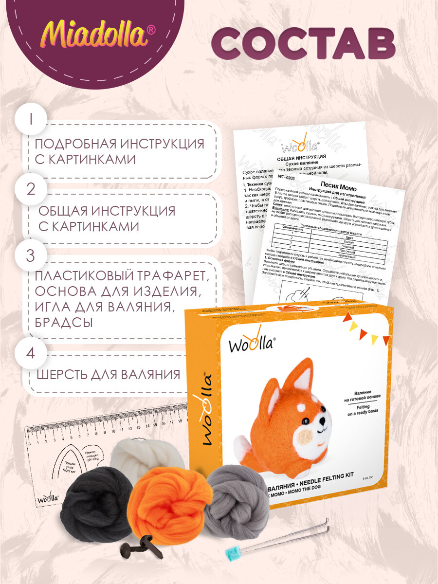 Наборы для валяния игрушки из шерсти "Miadolla" WT-0203 "Песик Момо" информация: