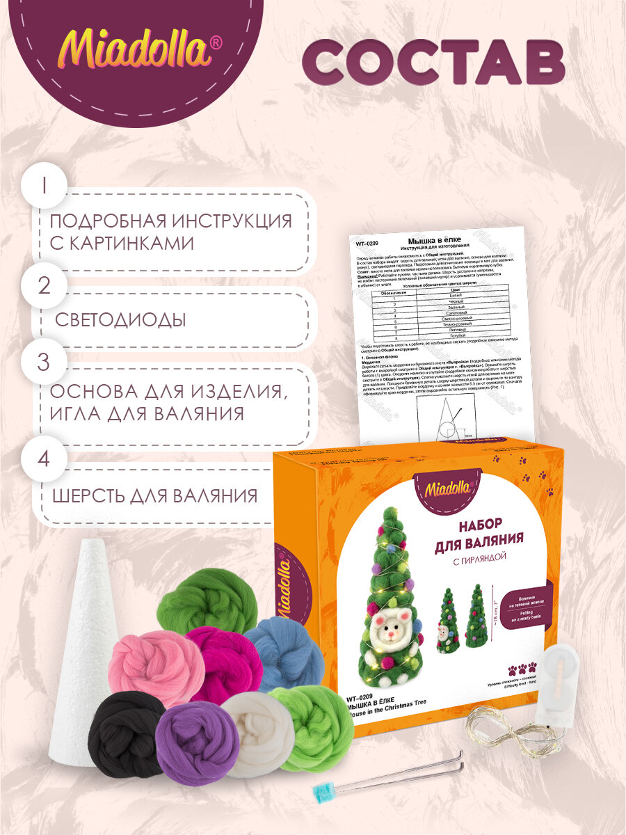 Наборы для валяния игрушки из шерсти (со светодиодами) "Miadolla" WT-0209 "Мышка в елке" информация: