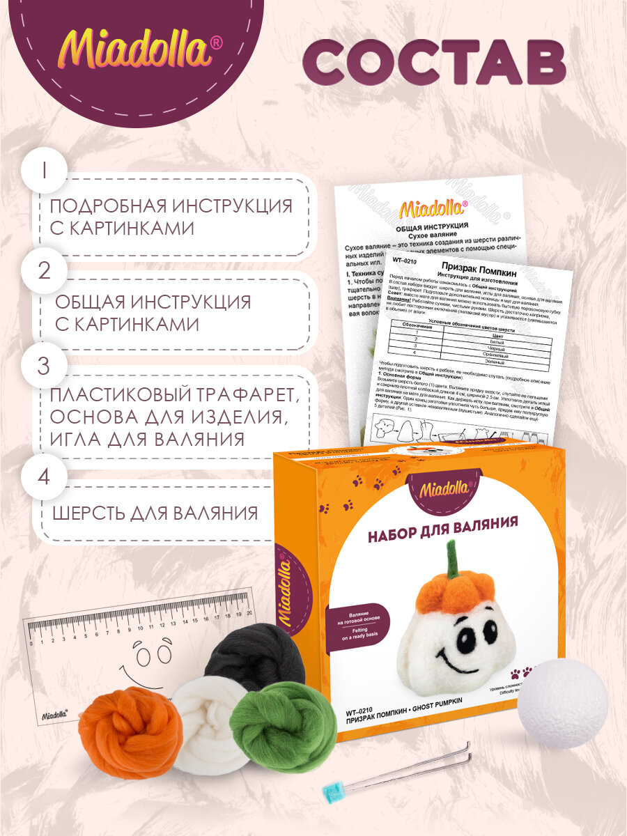 Наборы для валяния игрушки из шерсти "Miadolla" WT-0210 "Призрак Помпкин" информация: