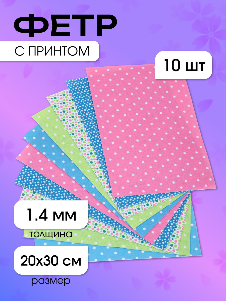 10 цен на Фетр с декоративным принтом Горошек IDEAL 1мм 20х30см арт. FLT-CPF2 уп.9 листов цв. ассорти