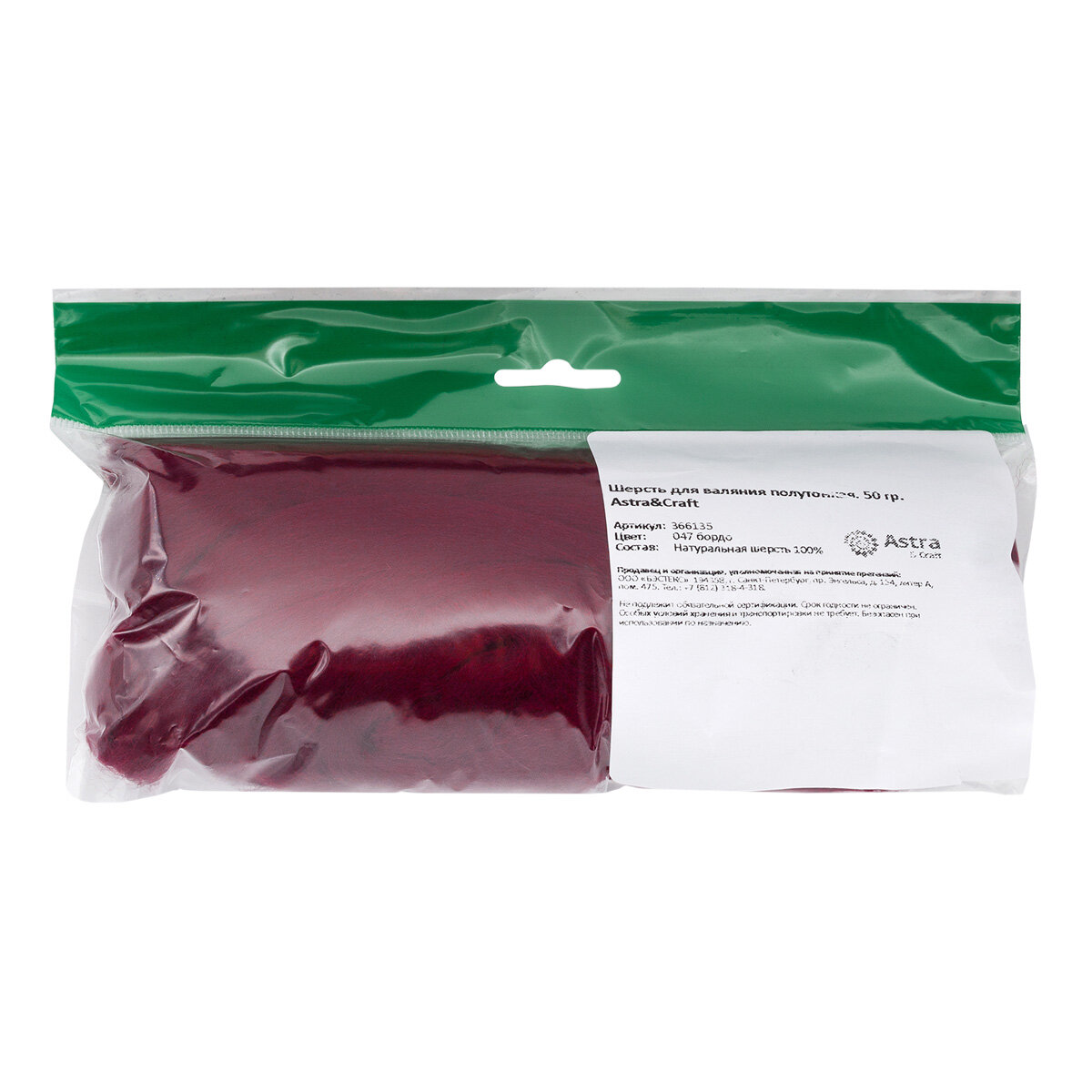 Шерсть для валяния полутонкая 100%, 50 г, Astra&Craft (047 бордо) информация: