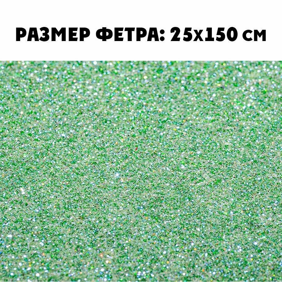 Фетр сияющий жесткий 2 мм 25х150 см, зеленый с голографическими блестками информация: