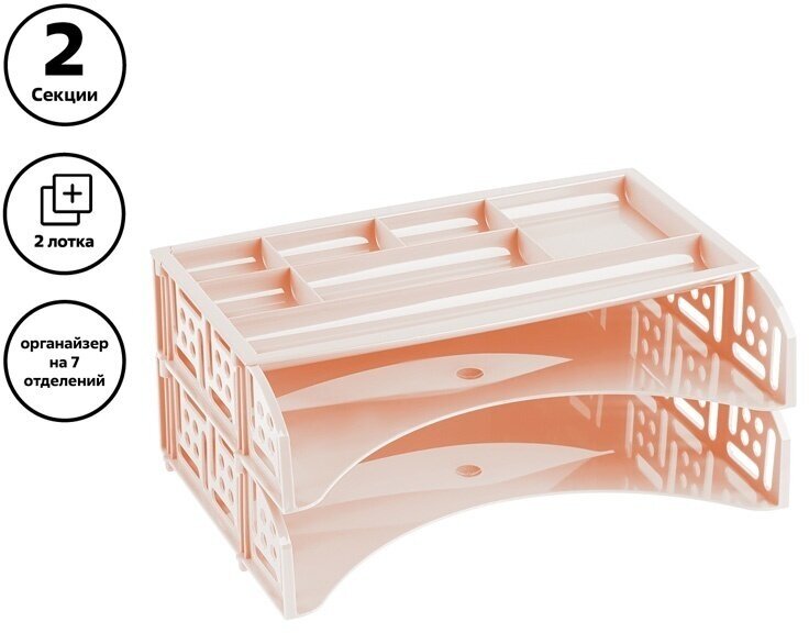 Отзывы на Лоток для бумаг горизонтальный Стамм "Field", набор 2шт. + органайзер, розовый Paris