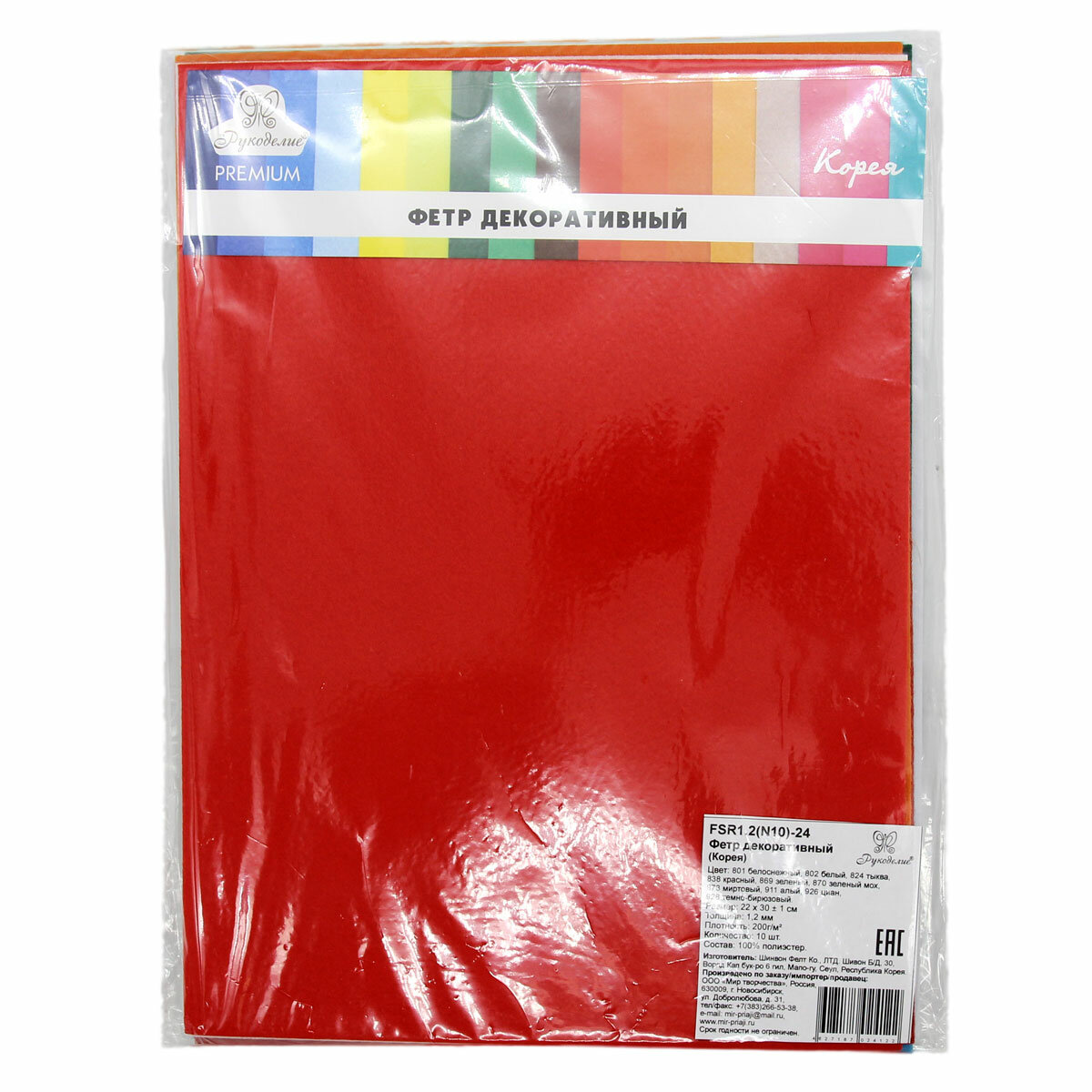 10 цен на Набор фетра для рукоделия Рукоделие, толщина 1,2 мм, 22*30 см, набор №24, 10 листов