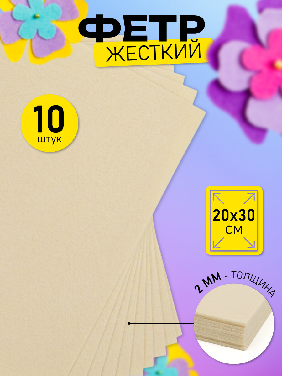 Фетр листовой жесткий IDEAL 2мм 20х30см арт. FLT-H2 уп.10 листов цв.647 топ. молоко информация: