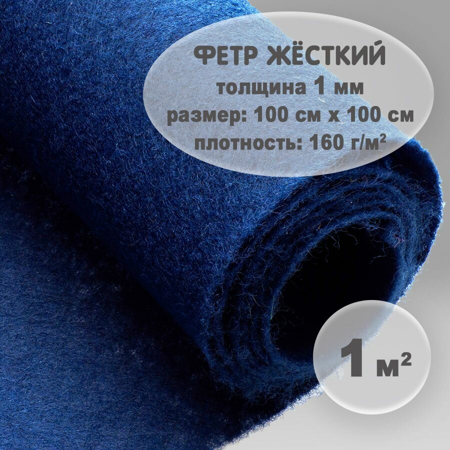 10 цен на Фетр жесткий 1 мм в рулоне 1 х 1 метр, темно-синий С 16, плотность 160 г/м2