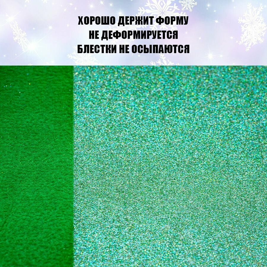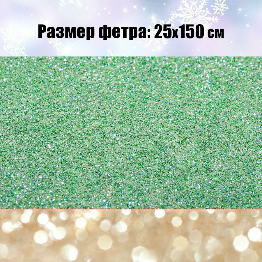 10 цен на Фетр блестящий жесткий 2 мм 25х150 см, зеленый с голографическими блестками