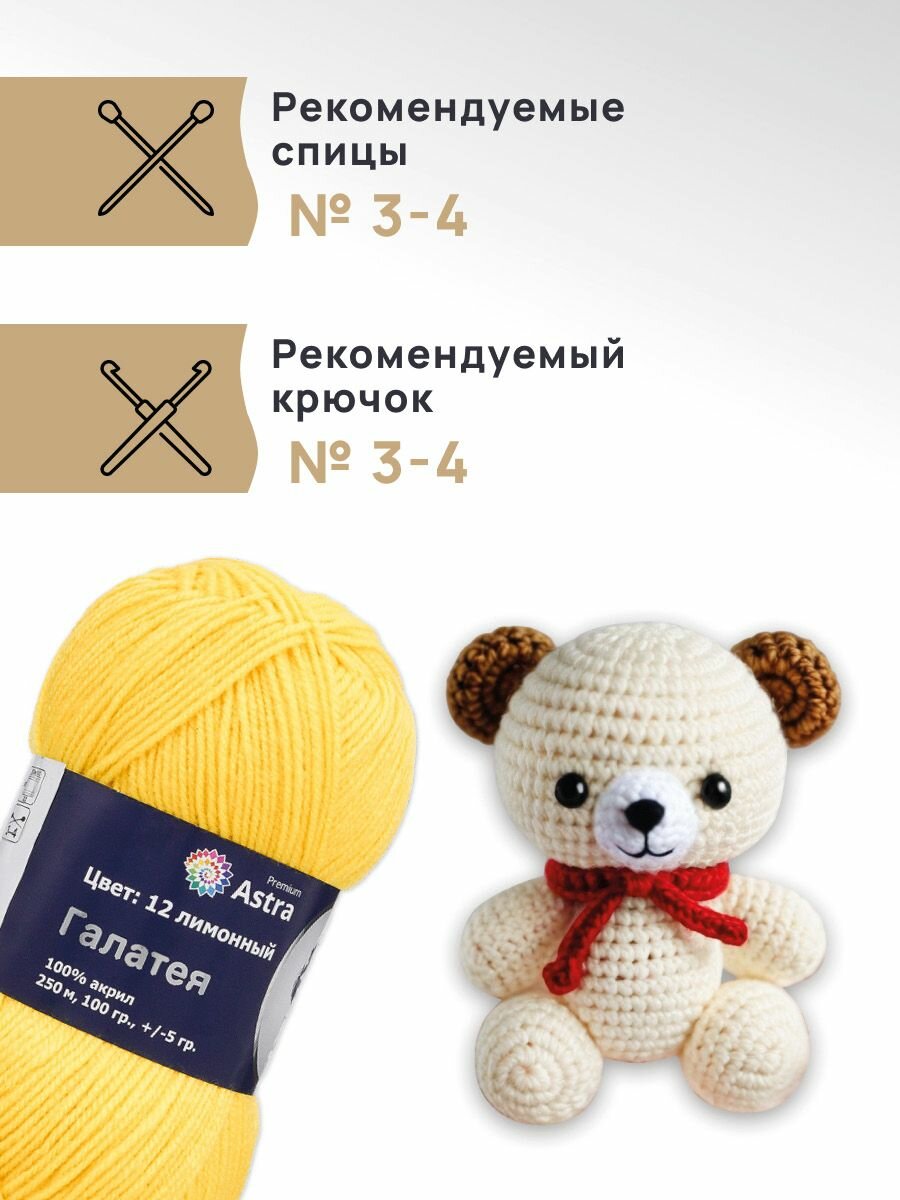 Пряжа для вязания Astra Premium 'Галатея' 100г, 250м (100% акрил) (12 лимонный), 3 мотка информация: