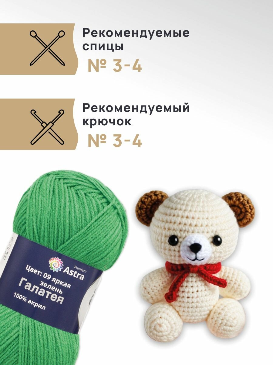 Пряжа для вязания Astra Premium 'Галатея' 100г, 250м (100% акрил) (09 яркая зелень), 3 мотка информация: