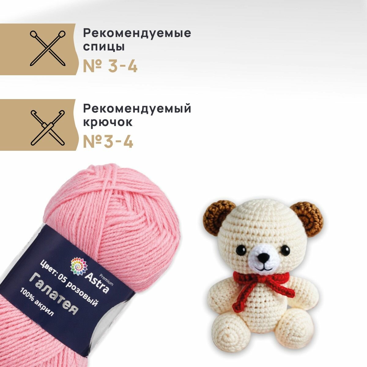 Пряжа для вязания Astra Premium 'Галатея' 100г, 250м (100% акрил) (05 розовый), 3 мотка информация: