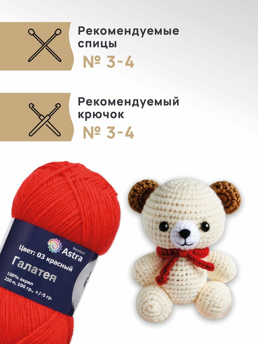 Пряжа для вязания Astra Premium 'Галатея' 100г, 250м (100% акрил) (03 красный), 3 мотка информация: