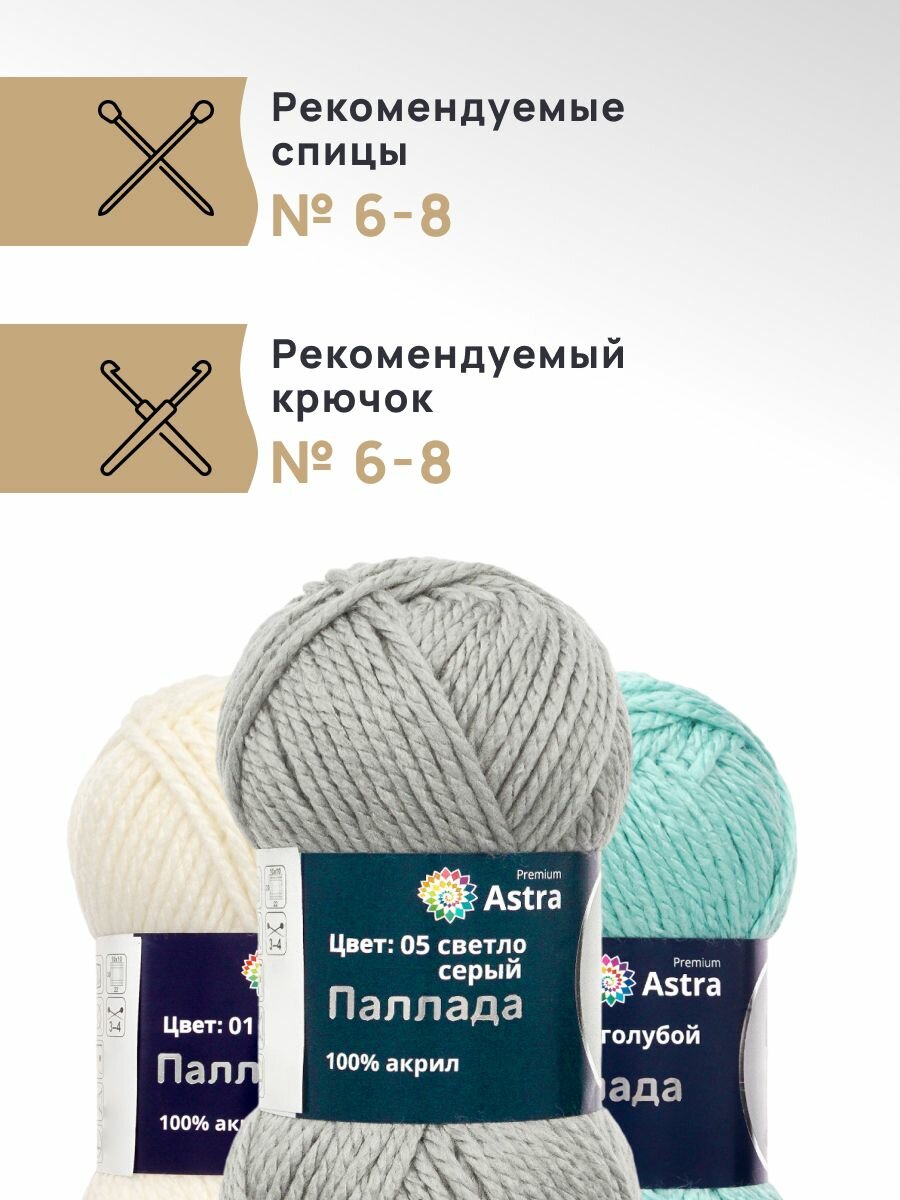 Пряжа для вязания Astra Premium 'Паллада' 100г, 100м (100% акрил) (05 светло-серый), 3 мотка информация:
