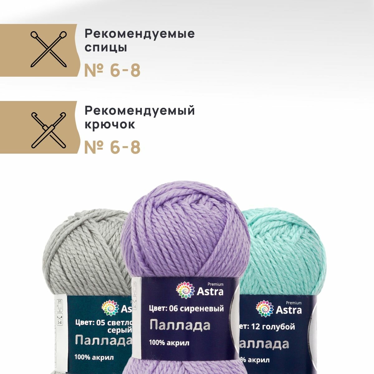 Пряжа для вязания Astra Premium 'Паллада' 100г, 100м (100% акрил) (06 сиреневый), 3 мотка информация: