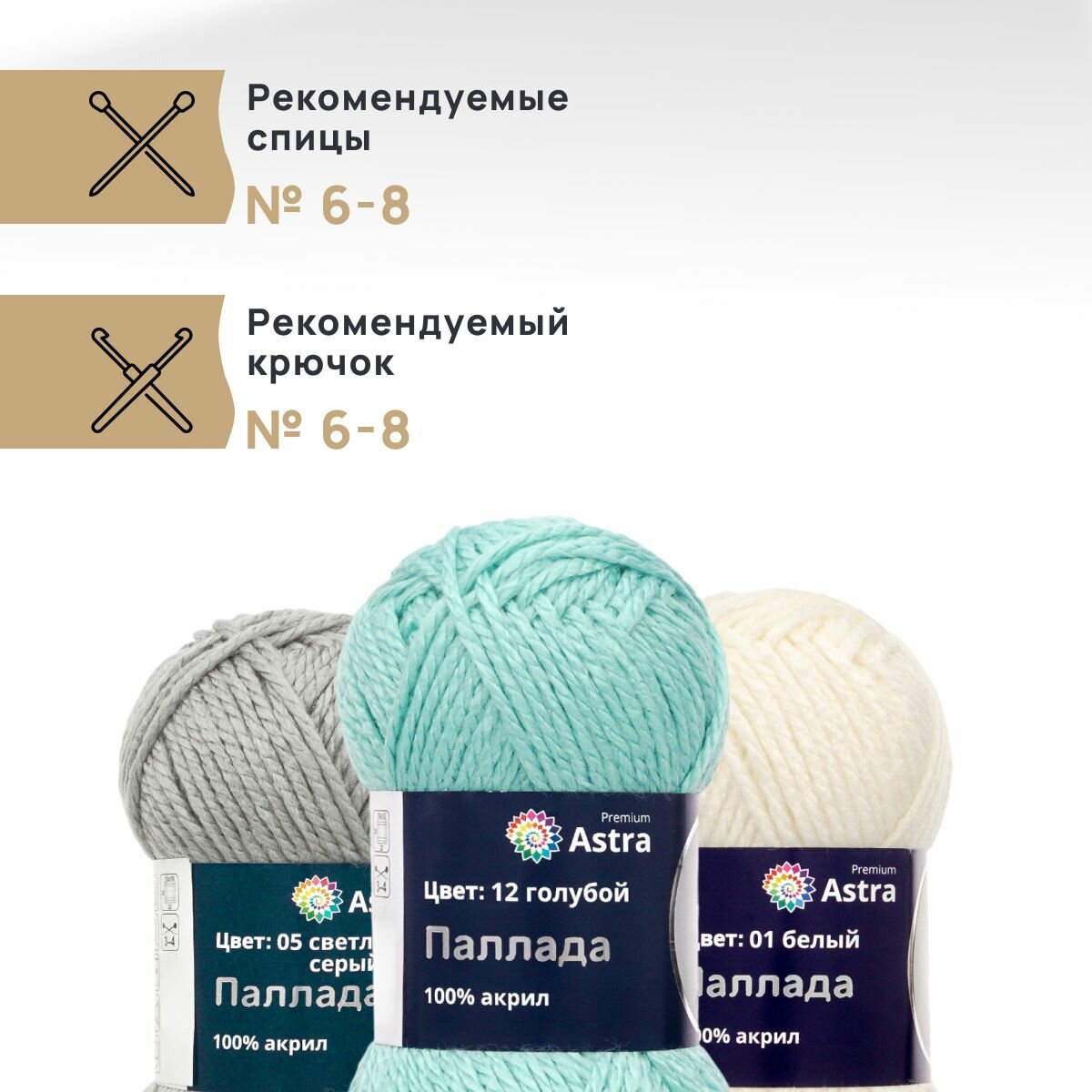 10 цен на Пряжа для вязания Astra Premium 'Паллада' 100г, 100м (100% акрил) (12 голубой), 3 мотка