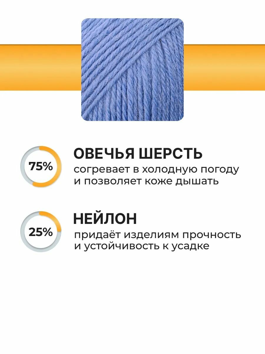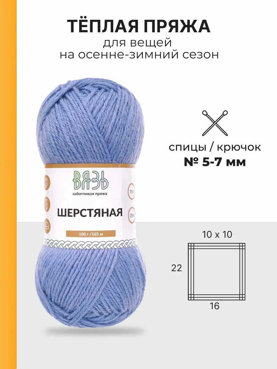 Пряжа для вязания Вязь 'Шерстяная' 100г, 165м (75% шерсть, 25% нейлон) (09 голубой), 3 мотка информация:
