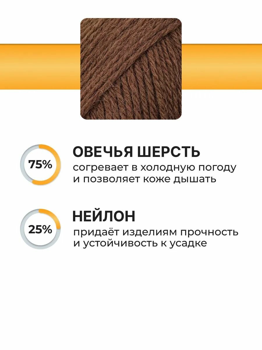 Пряжа для вязания Вязь 'Шерстяная' 100г, 165м (75% шерсть, 25% нейлон) (12 коричневый), 3 мотка информация: