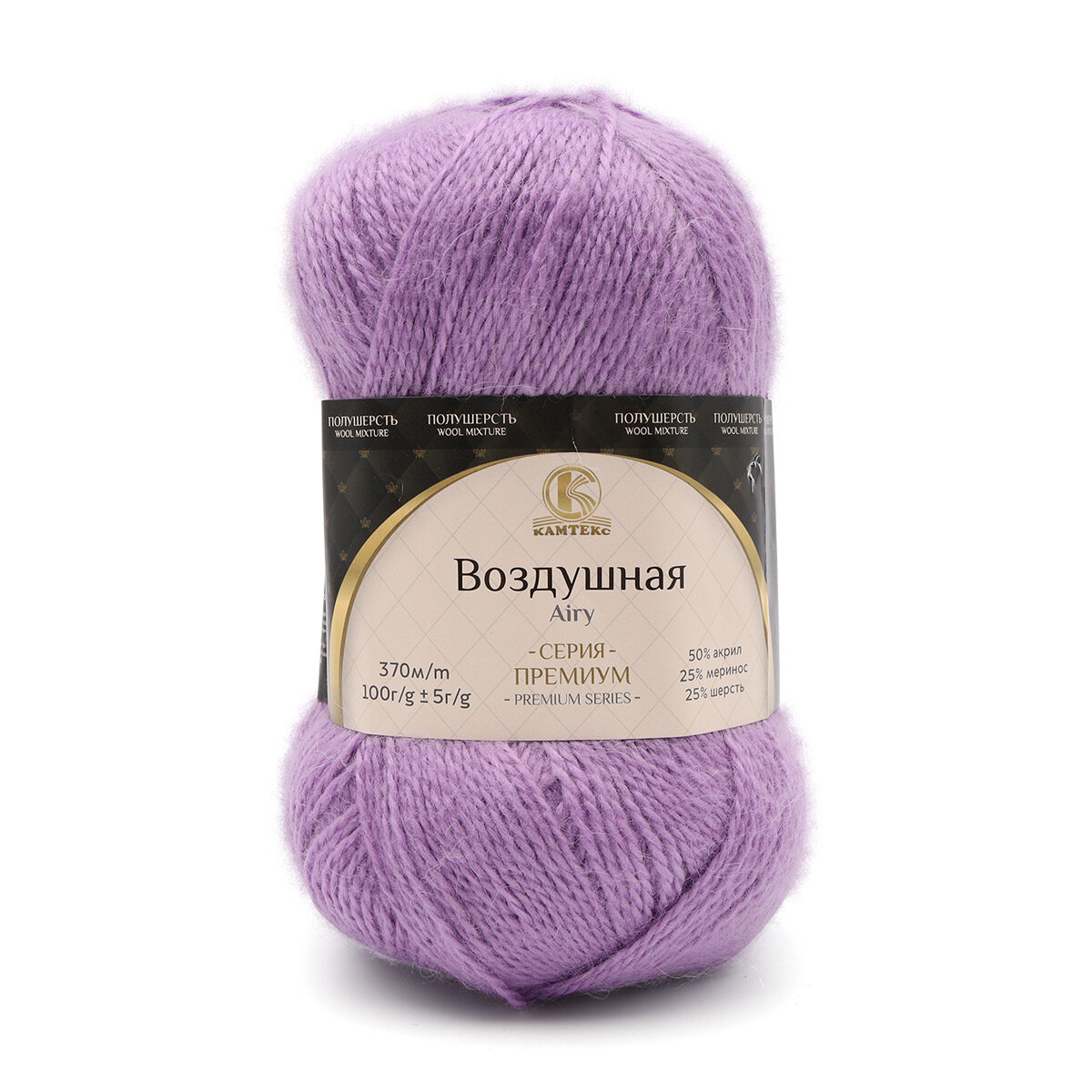 Пряжа Воздушная (Камтекс), сирень - 058, 25% мериносовая шерсть, 25% шерсть, 50% акрил, 5 мотков, 100 г, 370 м. информация: